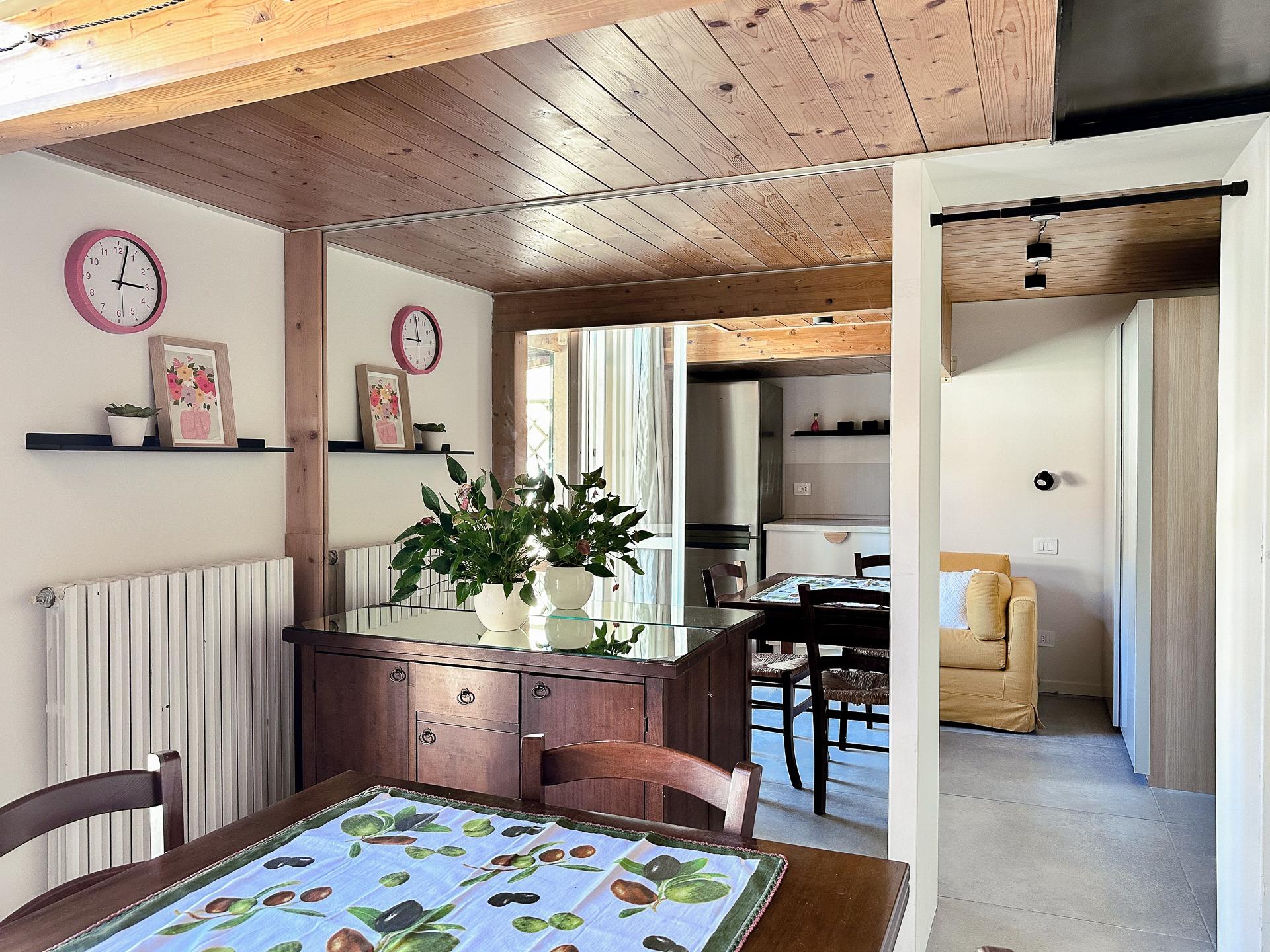 L’appartamento dispone di due camere da letto matrimoniali, un bagno, un soggiorno con un divano letto matrimoniale, una cucina attrezzata con la zona pranzo che si affaccia su un piacevole terrazzo coperto, perfetto per rilassarsi in ogni stagione. Ogni spazio è pensato per offrire un soggiorno pratico e confortevole, arricchito da dotazioni moderne e ambienti accoglienti.